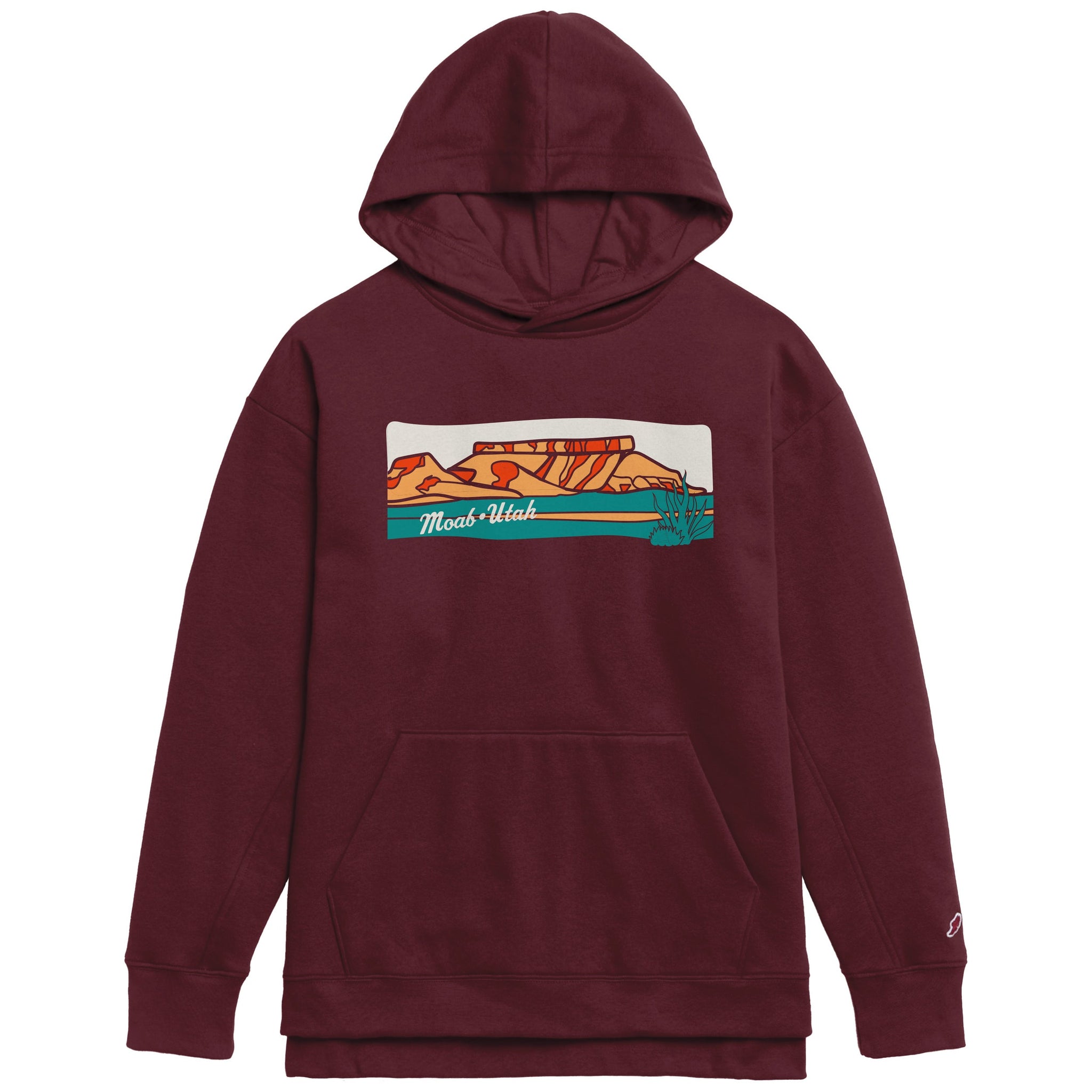L2's women’s Academy pullover hoodie has a slightly dropped shoulder, hi-lo hem, side vents, and a kangaroo pocket. The hood is jersey lined with a slight cross over front neckline and no drawcord. This sweatshirt is slightly more oversized but still tailored for a feminine fit. It truly is the perfect cozy fit.